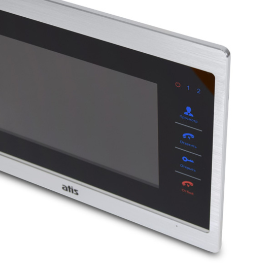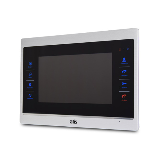 Відеодомофон ATIS AD-740HD S-Black з кольоровим 7 дюймовим TFT-екраном, сенсорними кнопками, можливістю підключення 2 HD/аналогових панелей виклику, 2 HD/аналогових відеокамер, 2 датчиків тривоги, 3 відеодомофонів і 1 додаткового монітора (телевізора). Колір - чорний.