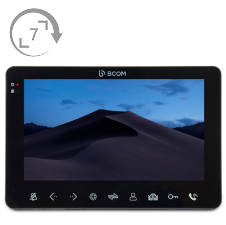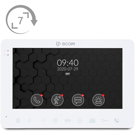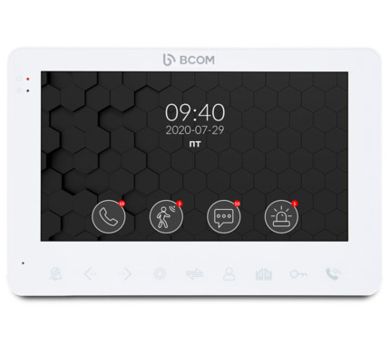 Відеодомофон BCOM BD-780 White з кольоровим 7-дюймовим TFT-екраном, сенсорними кнопками керування і можливістю підключення 2 панелей виклику. Колір - білий.