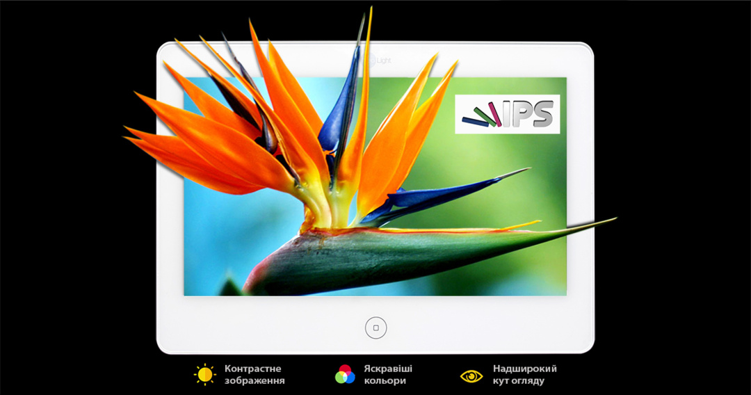 - домофон Mezzo HD обладнано кольоровим IPS-екраном з діагоналлю 7 дюймів і роздільною здатністю 1024*600 пікселів;