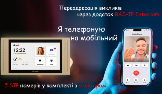 Мобільний додаток: BAS-IP Intercom підтримує переадресацію виклику на смартфон, що дозволяє користувачам контролювати доступ в приміщення і спілкуватися з відвідувачами з будь-якої точки світу за допомогою смартфона або планшета. Потрібно лише встановити додаток та насолоджуватися переадресаціїю виклику.