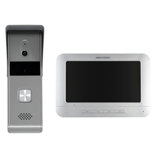Дізнатись більшеDS-KIS203T позволит установить удобный домофонный контроль за домом, офисом, проходной, либо в любом другом месте. В комплект входит вызывная панель для посетителей, а также внутренний домофон. Наружное металлическое устройство состоит из звонка, видеокамеры, динамика и микрофона. С помощью этих функций, можно связаться с контрольной точкой, состоящей из дисплея и физических кнопок управления. Комплект предполагает возможность посмотреть в реальном времени, кто пришел, поговорить через аудиосвязь и открыть двери дистанционно. Подключение производится аналоговым путем. Панель от DS-KIS203T защищена от воздействий и может размещаться в том числе на улице. Обе составляющие произведены Hikvision и легко подключаются, благодаря максимальной совместимости.