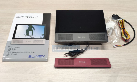 Відеодомофон SLINEX Sonik 7 Cloud має стильний, сучасний дизайн. Він доступний в білому або чорному кольорі. Лицьова панель відеодомофона виконана в різних кольорах.