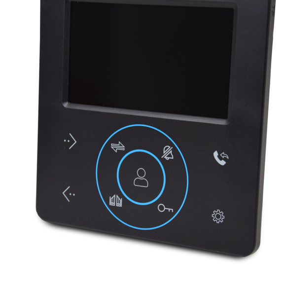 Складається з кольорового відеодомофона чорного кольору з екраном 4 дюйми і сенсорними кнопками керування і кольорової панелі виклику чорного кольору з роздільною здатністю 1000ТВЛ і накладним способом встановлення. До домофона можливо підключити 2 панелі виклику.