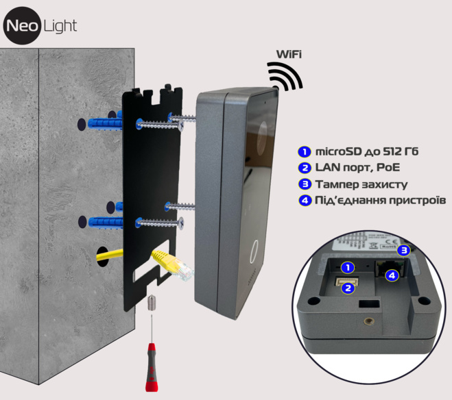 - сумісність з відеодомофонами NeoLight, що працюють у стандарті IP;