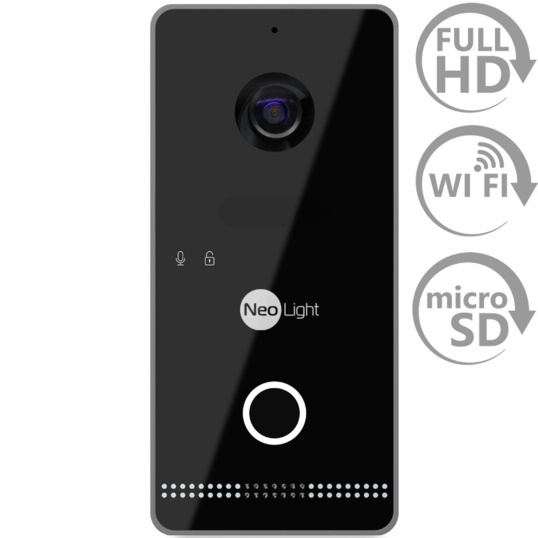 Кольорова IP-відеопанель NeoLight OPTIMA IPW на 1 абонента з Wi-Fi, детекцією руху з камерою 2 Мп. Спосіб встановлення – накладний. Колір корпусу відеопанелі – чорний.