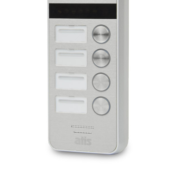 Кольорова відеопанель AT-404HD Silver на 4 абоненти з високою роздільною здатністю HD 1280x720 і широким кутом огляду 120°. Спосіб монтажу накладний. Колір корпусу відеопанелі - срібло..