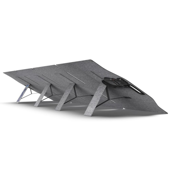 Монокристалічна розкладана сонячна панель для підключення до портативних зарядних станцій, сонячних інверторів; потужність 400 Вт; ефективність 23%; напруга холостого ходу 61.5 В; струм короткого замикання 8.2 А; номінальна напруга 51.3 В; номінальний струм 7.8 А; вихідний роз’єм для підключення MC4; клас захисту IP68; розмір в розкладеному стані 2611 / 985 / 20 мм, транспортувальний розмір 653 / 985 / 46 мм; вага 17.5 кг