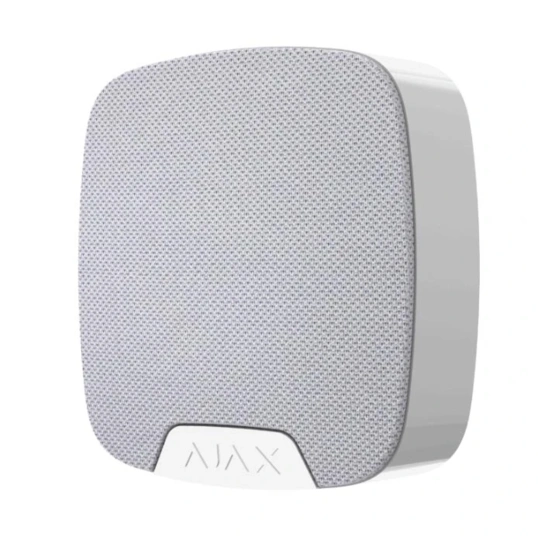 Бездротова кімнатна сирена Ajax HomeSiren біла призначена для звукового оповіщення про тривогу і встановлюється всередині приміщень. При тривозі, розумна централь сигналізації Ajax Hub передає бездротовий сигнал на сирену. Після отримання сигналу тривоги від централі сирена спрацьовує і лунає сигнал тривоги.