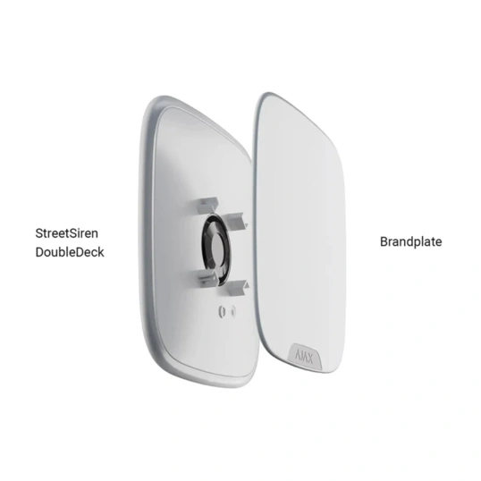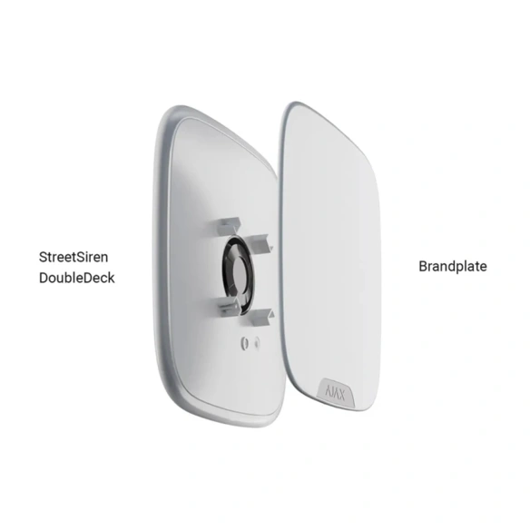 Вулична сирена з кріпленням для брендованої лицьової панелі Ajax StreetSiren DoubleDeck White