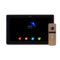 Состоит из цветного видеодомофона черного цвета с сенсорным IPS экраном 10 дюймов и цветной вызывной панели золотистого цвета с разрешением HD 1280x720 и накладным способом установки. К домофону возможно подключить 2 AHD/TVI/CVI видеопанели с разрешением Full HD или 2 аналоговые вызывные панели и 2 AHD/TVI/CVI с разрешением Full HD или 2 аналоговые видеокамеры, поддерживается запись фото/видео, есть детектор движения на 4 канала (одновременно запись с 1, где есть движение), слот для карт памяти до 32ГБ.