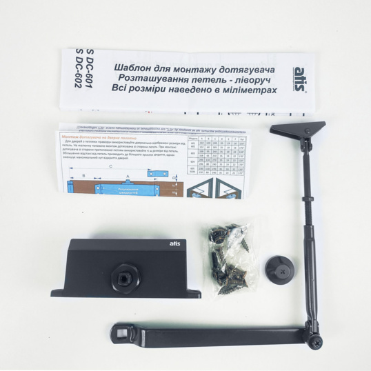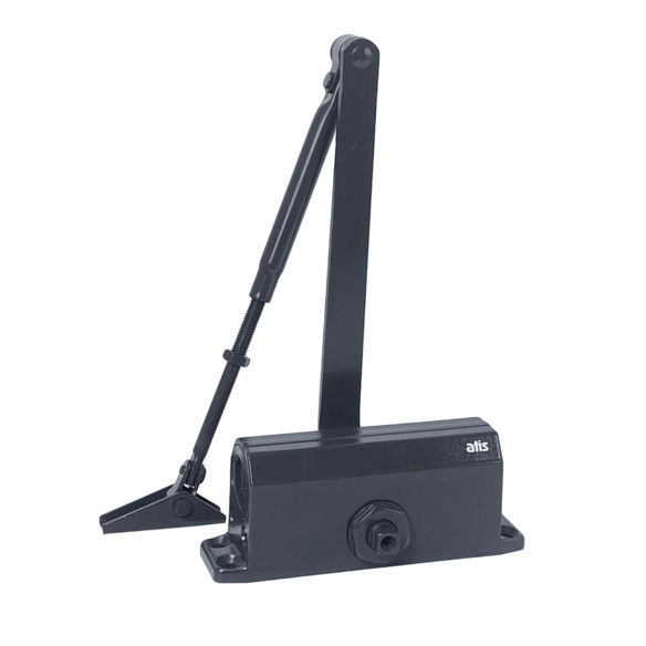 ATIS DC-602 OH Graphite доводчик верхнего монтажа с рычажной передачей. Полукоммерческое использование, наработка на отказ 500000 циклов.Усилие закрывания DIN2 (вес двери до 45 кг, ширина до 850мм). Функция Hold-Open. Цвет графит.