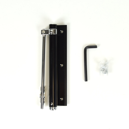 ATIS AS-0254 Black доводчик с пружинной тягой. В зависимости от типа двери (открытие на или от себя), доводчик устанавливается в средней части дверной коробки или дверного полотна.