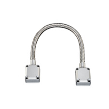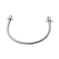 Гнучкий перехід дверний, використовується для захисту кабелю від пошкодження і деформації. Складається з гофрованої труби і кріпильних елементів. Зроблено зі сплаву металів (в основному цинк). Тип установки: вуличний / внутрішній. Загальна довжина 410 х 28 мм. Розміри гофрованої труби 410 х 8мм. Внутрішній діаметр 6 мм. Вага 78 грам.